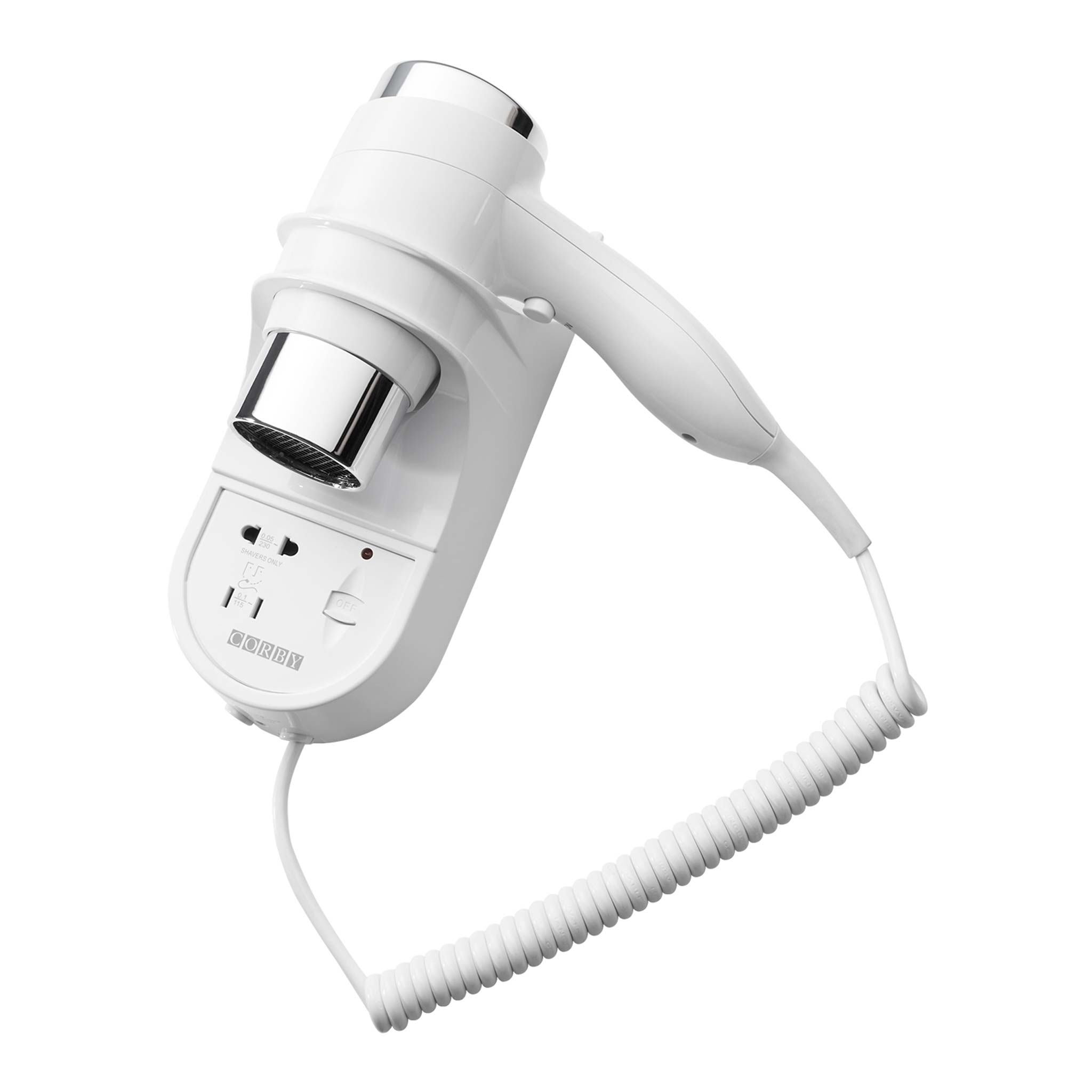The Corby Kendal 1600W Hairdryer is perfect for bathroom use. Wall mounted with an integrated shaver socket and coiled cable, yet still maintaining a powerful 1600W drying experience.