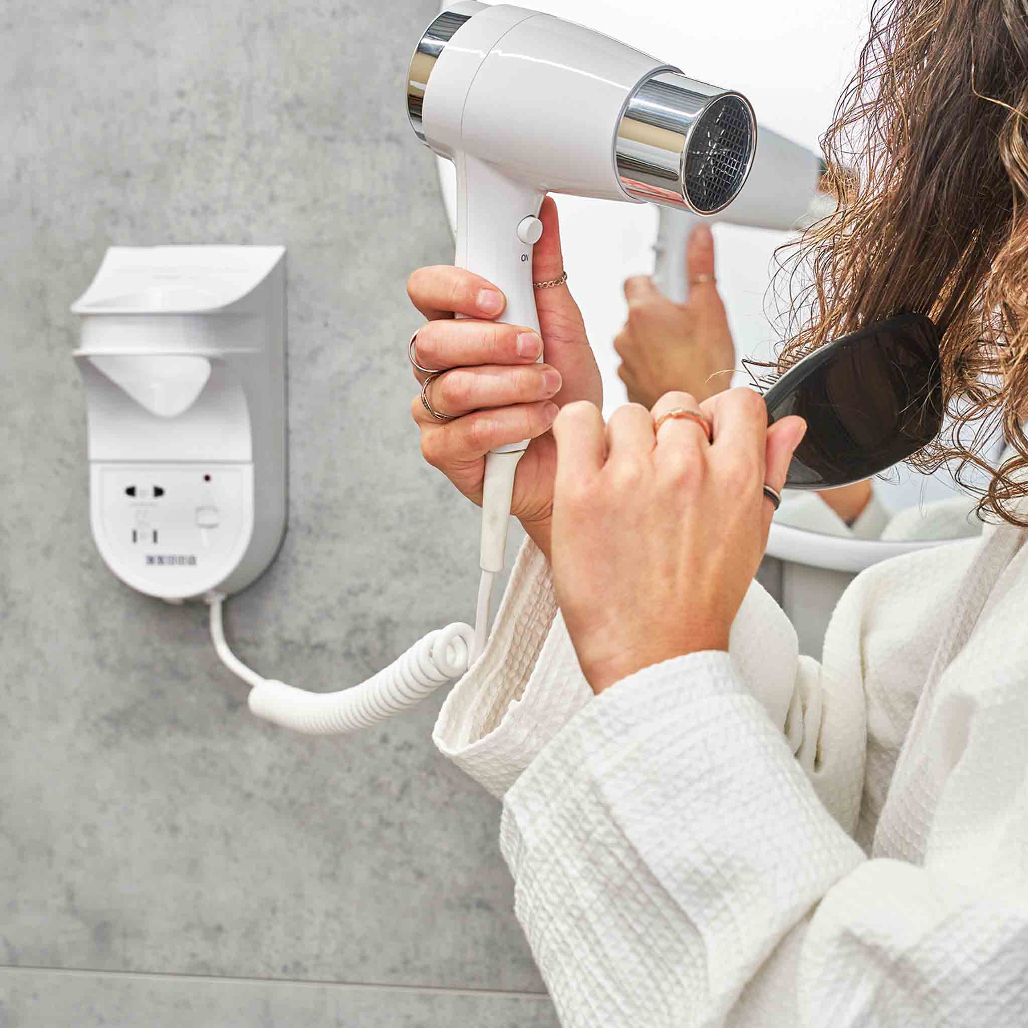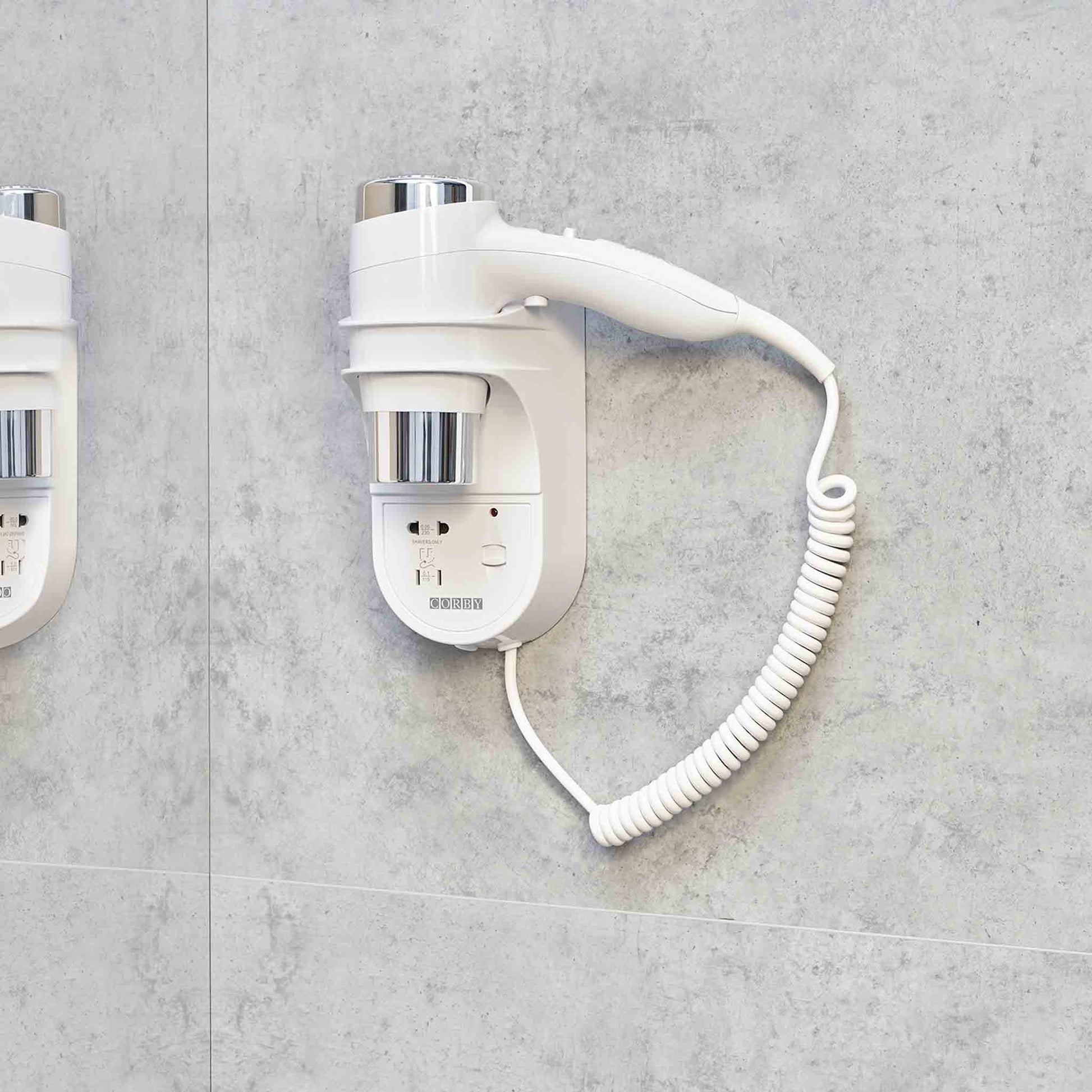 The Corby Kendal 1600W Hair Dryer is a practical wall-mounted solution for hotel bathrooms, combining convenience with modern design. Featuring trigger activation, two speeds, and three temperature settings, it offers reliable performance for guest use. A coiled cable and integrated filter simplify daily operation and maintenance, while the built-in shaver socket adds extra functionality. Designed for durability, it is well suited to high-use hospitality environments.